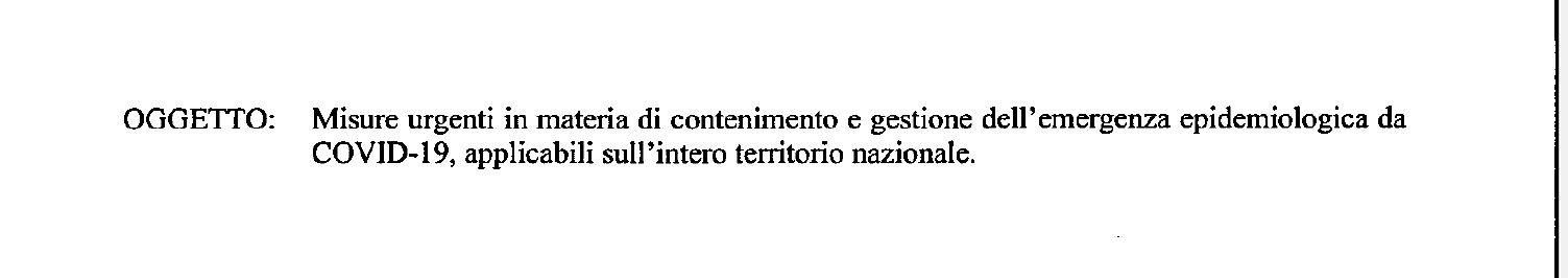 Misure urgenti in materia di contenimento e gestione dell'emergenza epidemiologica da COVID-19, applicabili sull'intero territorio nazionale.
