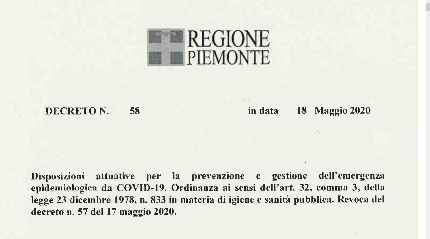 dello stesso è del tutto analogo al Decreto n. 57 del 17 maggio, ad eccezione dei 3 punti che sono stati modificati nel