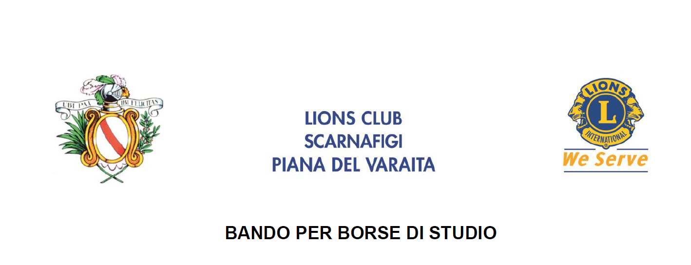Il Lions Club Scarnafigi Piana del Varaita istituisce N. 4 borse di studio del valore di 500 Euro cadauna per studenti iscritti al quinto anno di scuola secondaria di II grado nell’anno scolastico 2021 2022, residenti nei Comuni di Octavia Scarnafigi, Cardè, Casalgrasso, Ca vallerleone, Faule, Manta, Monasterolo di Savigliano, Moretta, Murello, Lagnasco, Polonghera, Revello, Ruffia, Torre San Giorgio, Villafalletto, Villanova Solaro, Vottignasco).