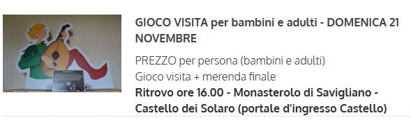 Partenza gioco visita guidata per famiglie con bambini: ore 16.00 - ritrovo presso il portale d'ingresso del Castello dei Solaro.