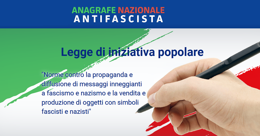 Si informa la cittadinanza che presso l'Ufficio Anagrafe sono depositati i moduli per la raccolta firme per la proposta di legge di iniziativa popolare avente ad oggetto: "Norme contro la propaganda e la diffusione di messaggi inneggianti a fascismo e nazismo e la vendita e la produzione di oggetti con simboli fascisti e nazisti". promotore: Comitato Anagrafe Antifascista - G.U. n. 260 del 20.10.2020 -